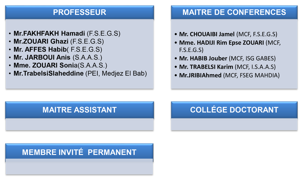 Le Conseil de laboratoire est composé de 13 membres élus et nommés (6 représentants des professeurs des universités, 5 représentants des maîtres de conférences, 1 représentant du personnel administratif et 1 représentant des doctorants).